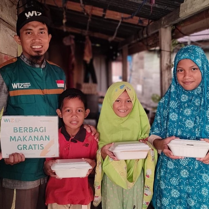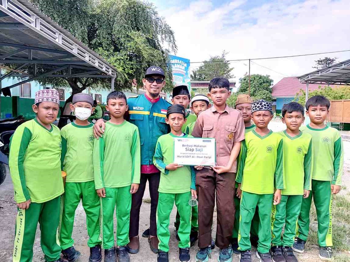 Sebanyak 11 murid kelas 5 dan 6 SDIT Al-Ihsan Parigi turut terlibat langsung dalam kegiatan ini, mendampingi para relawan WIZ Parigi membagikan paket makanan kepada pedagang kaki lima, tukang ojek, dan petugas kebersihan yang berada di area pasar.